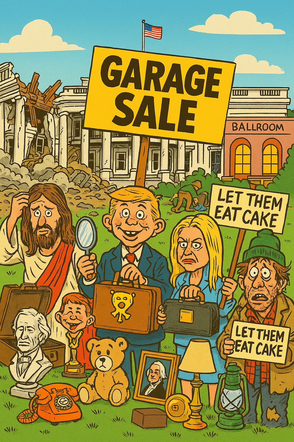 WASHINGTON D.C. – In a move that has left politicians and historians alike utterly bewildered, former President Donald Trump has announced the "Greatest, Most Beautiful Garage Sale in the History of the World," to be held on the freshly cleared lawn where the White House's East Wing once stood.