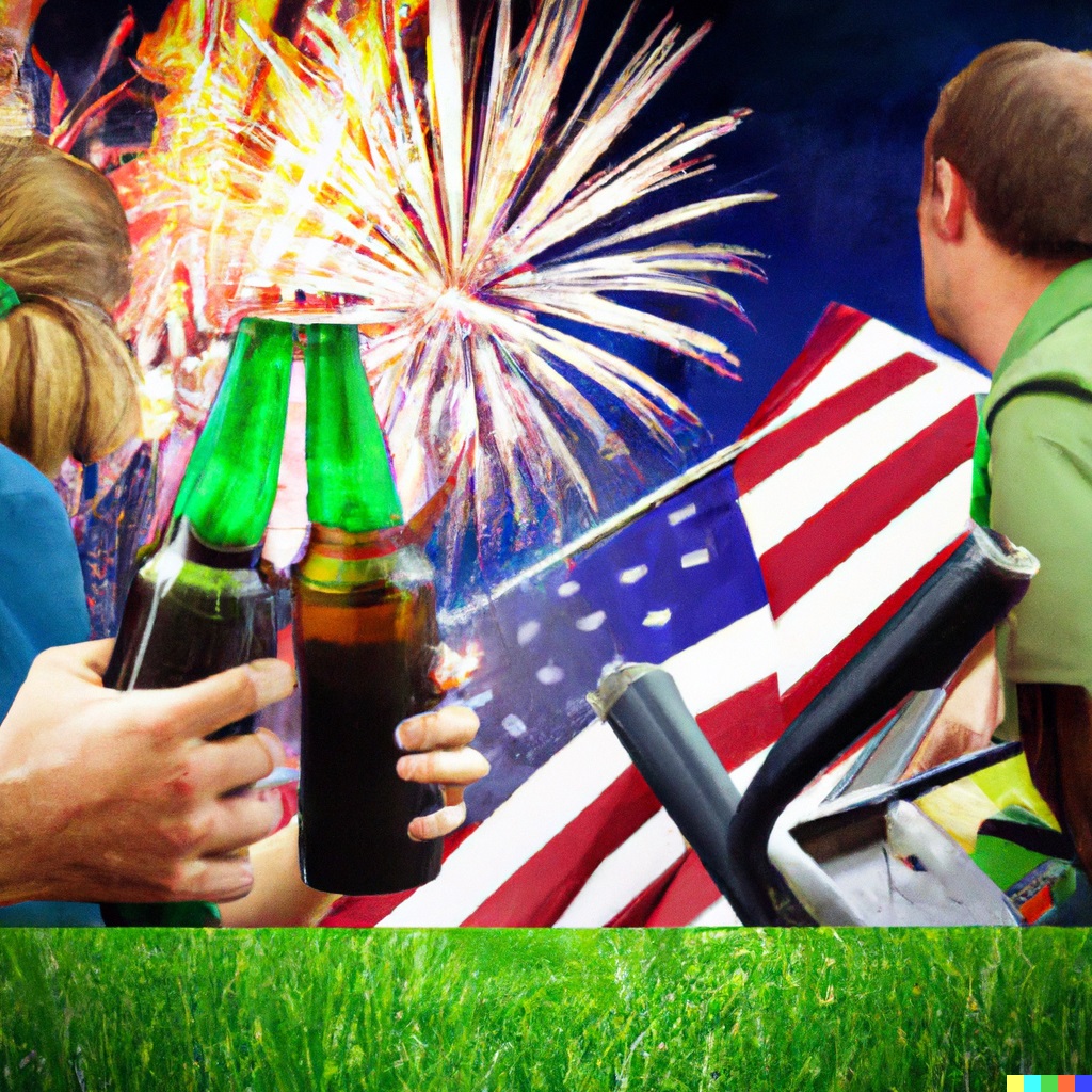 To further embody American stereotypes, the participants might express a keen interest in lawn care. They may pretend to mow imaginary lawns or engage in humorous conversations about the best ways to achieve a perfectly manicured lawn.