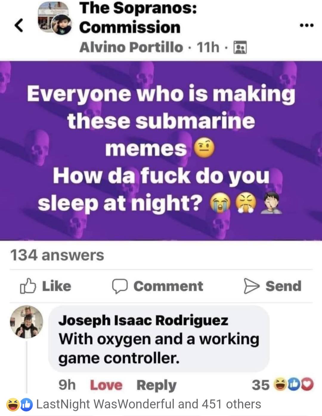 It was a normal day for the submersible, cruising along the ocean floor, exploring the depths of the unknown. But then something strange happened; the crew was suddenly forced to watch nothing but James Cameron movies because that is the only DVD movies that would play on the Sony PS2 in the corner that was also used in piloting the ship. Ironically, Titanic, Avatar, the other Avatar movie and others were onboard for the passenger's enjoyment.